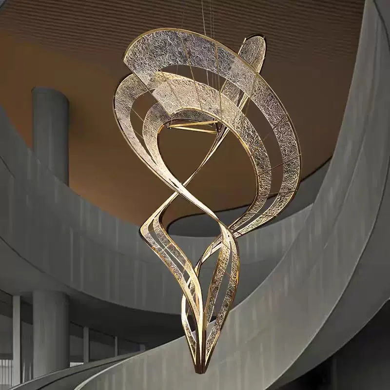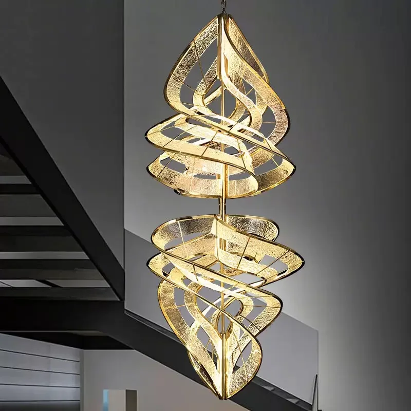Italian High-End Customizable Villa Lamp Duplex Living Room Spiral Staircase Dining Room Club Ribbon Chandelier Pendant Lights