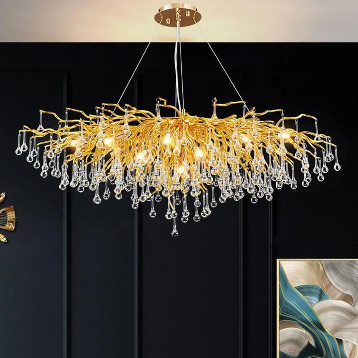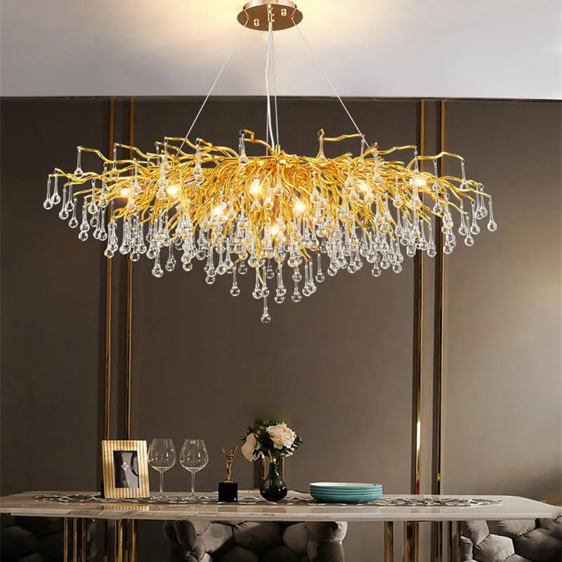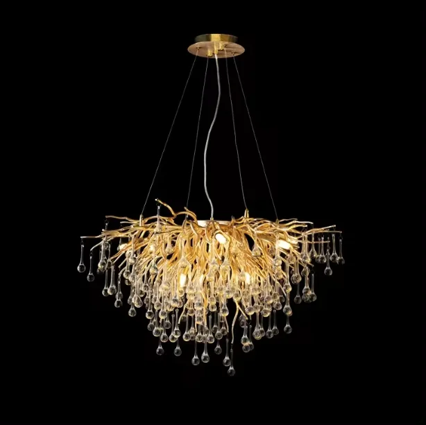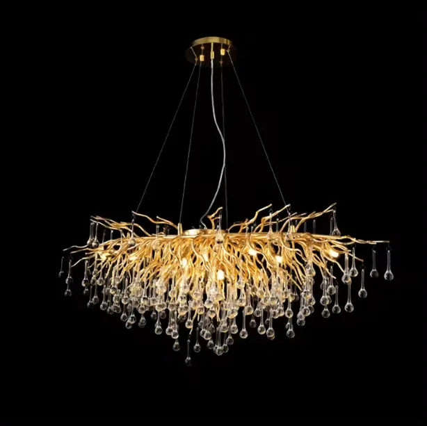 Decorative Gold Tree Branch Raindrop Pendant Lights Living Room Villa Luxury Crystal Chandeliers Fixtures