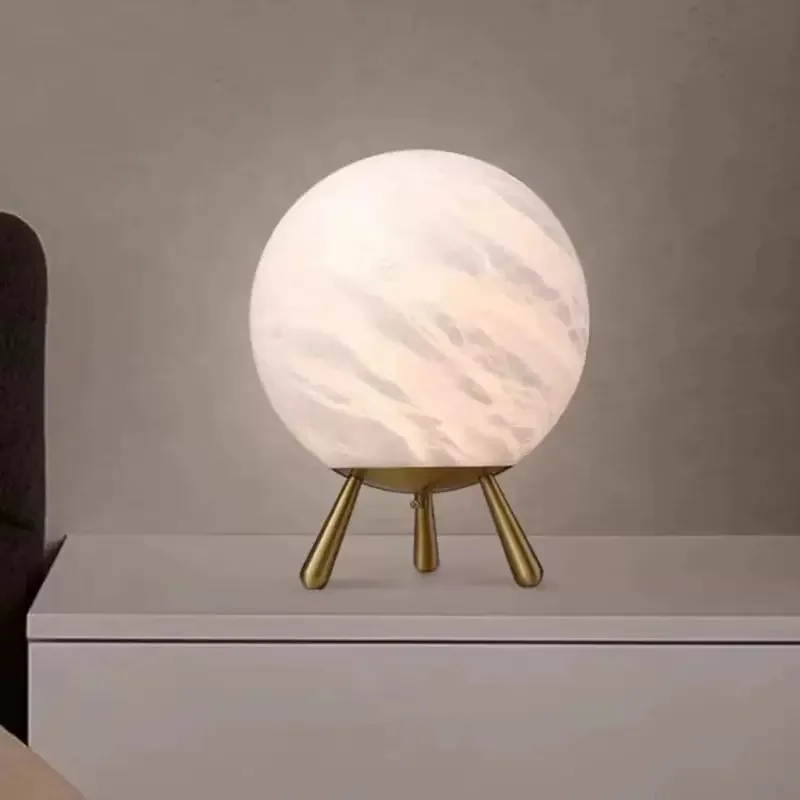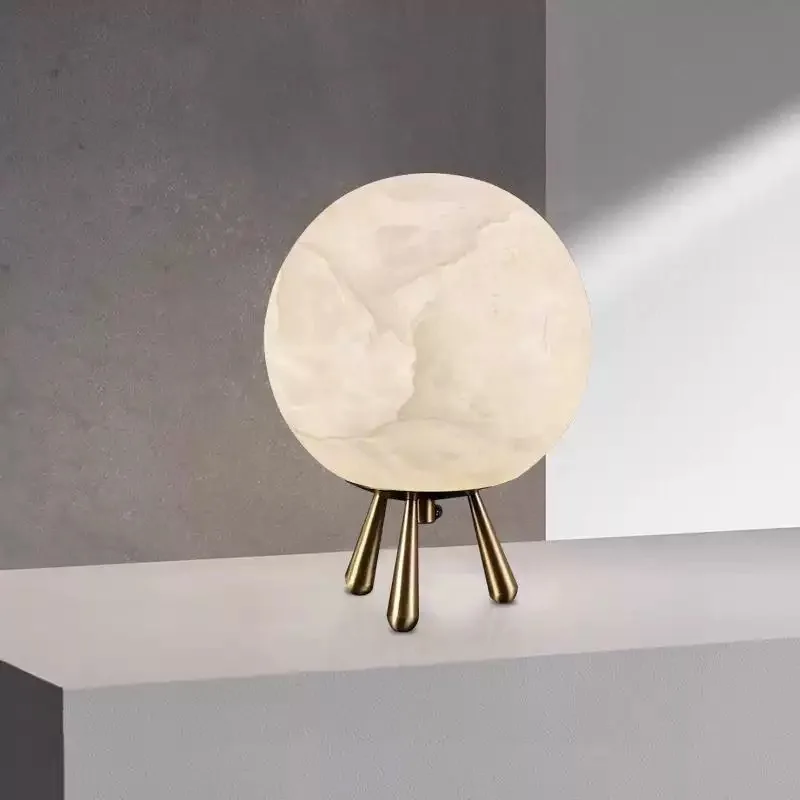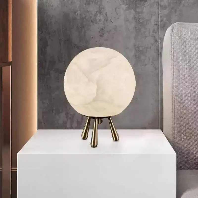 Spanish Natural Marble Table Lamp Simple Bedroom Bedside Night Light Copper Material LED Desk Atmosphere Decorative Reading Room