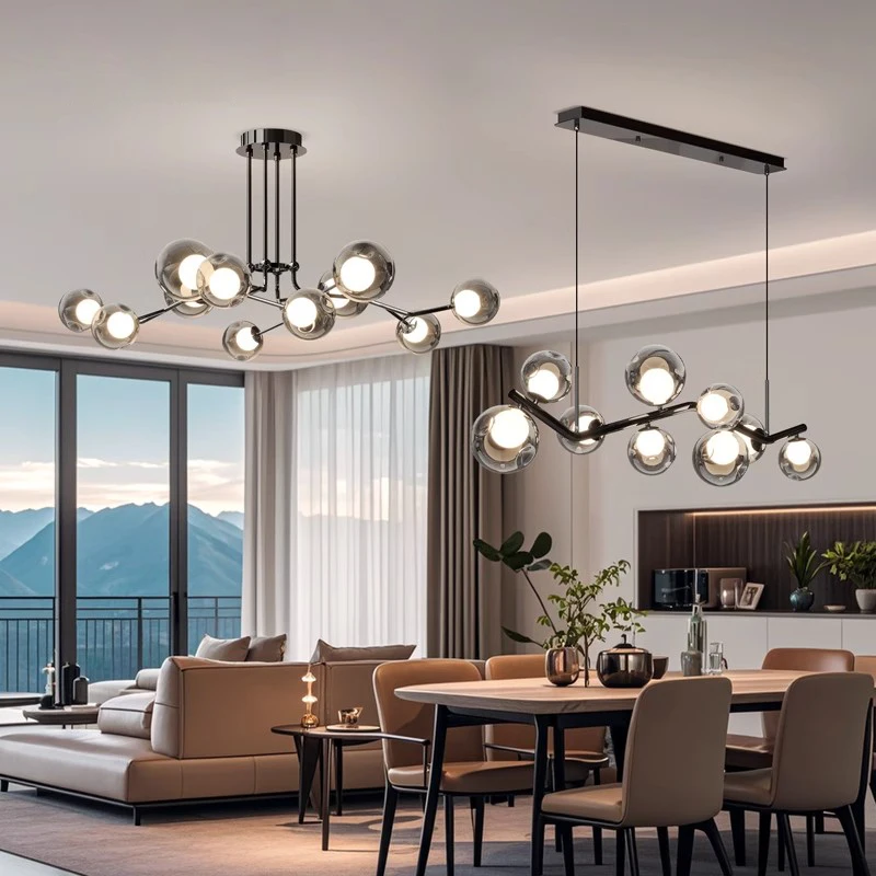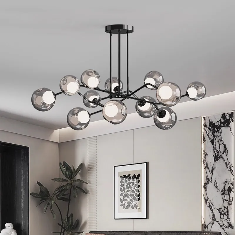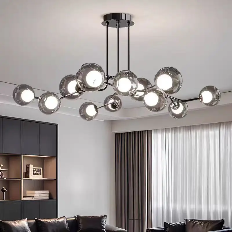 Italian Minimalist High-End Iron Chandelier Zhongshan Main Light for Living Room Molecular Hall Available Middle Magic Bean