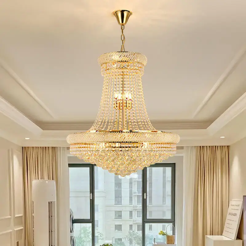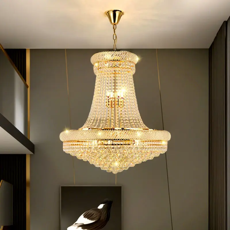 Zeal Lighting Hotel Lobby Hall Decorative Large Hanging Light Customized Long Gold Crystal Elegant Chandelier