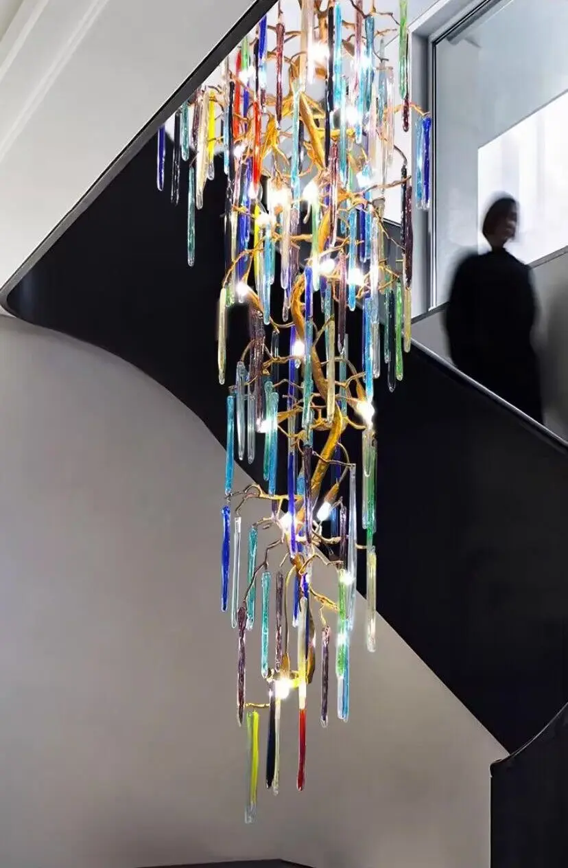 Zeal Lighting Long Stairwell Hanging Pendant Light Staircase Villa Duplex Stair High Ceiling Crystal Chandelier