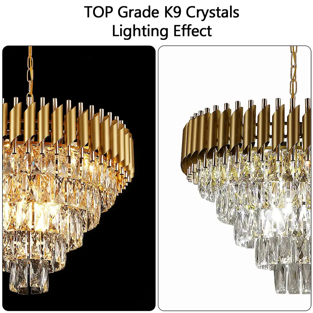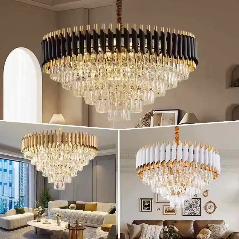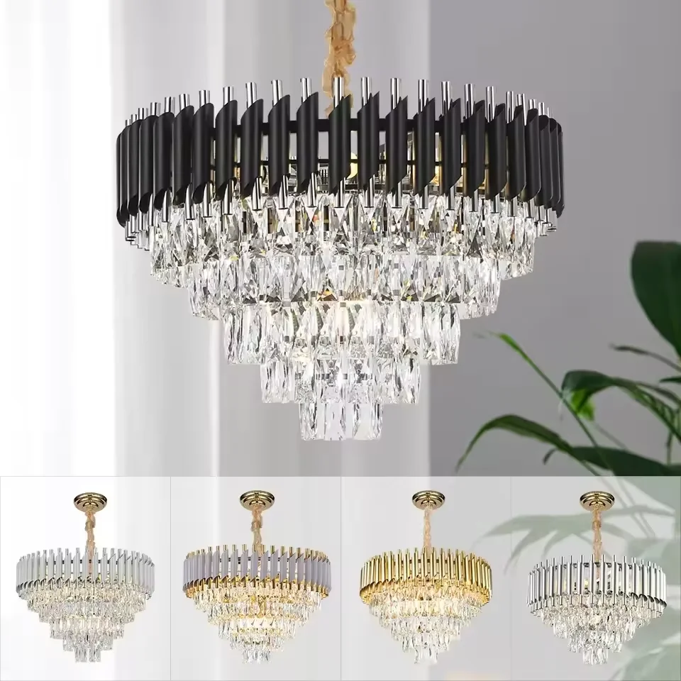 Modern Indoor Lighting Golden Iron Pendant Light Lustre Luxury Black Crystal Chandelier for Living Room