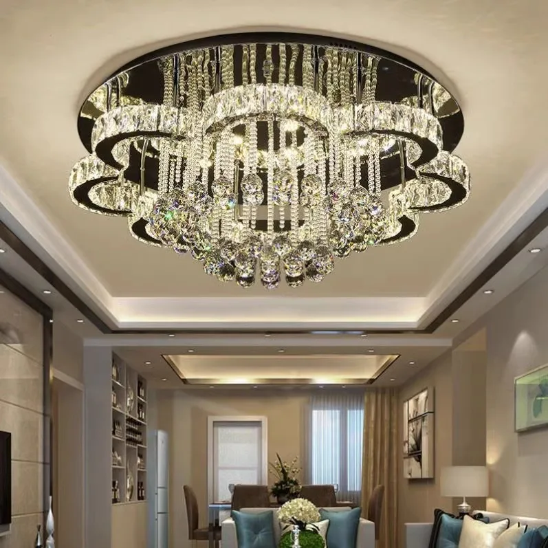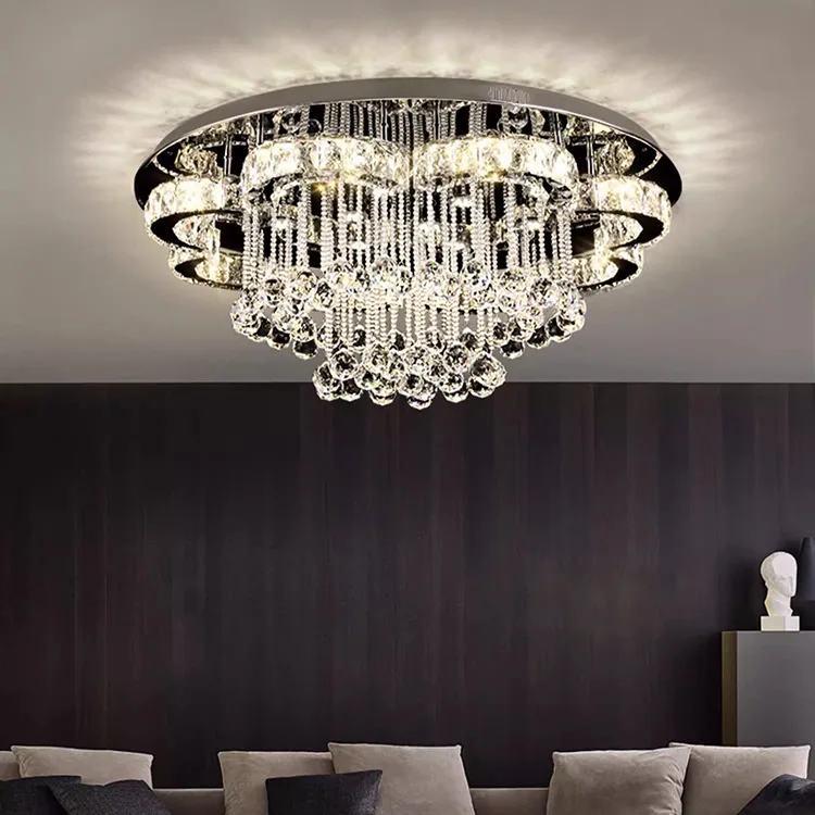 Direct Sale From Manufacturer Light Luxury Simple Modern LED Crystal Ceiling Lights for Bedrooms & Living Rooms Metal Base