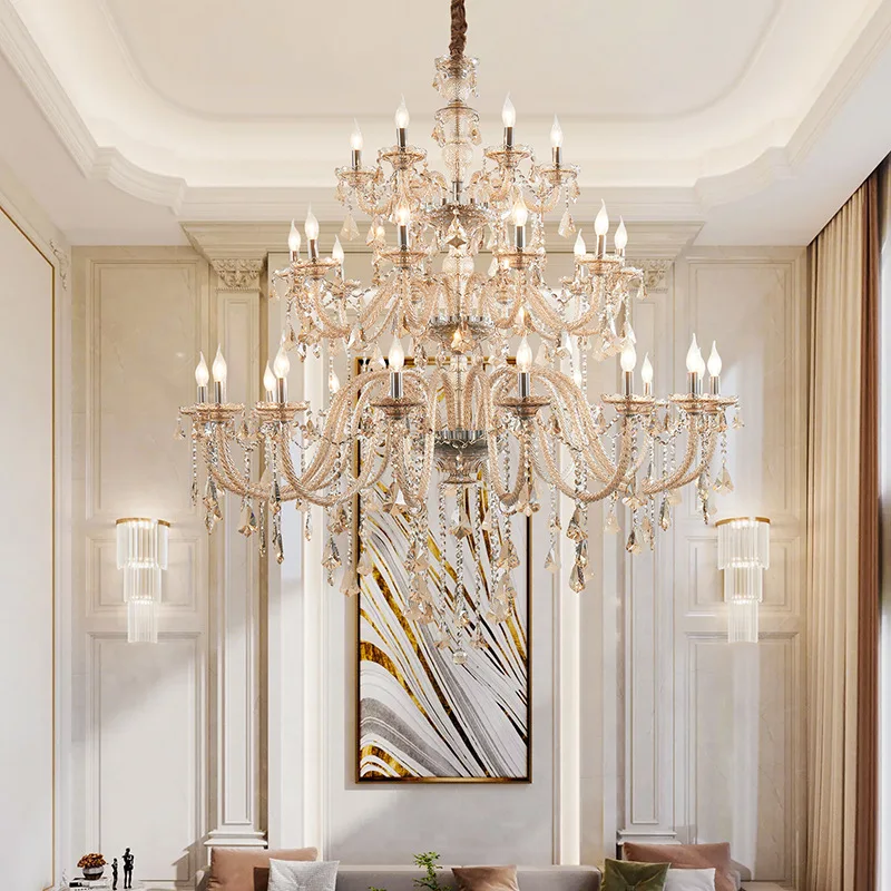 Lobby Villa Hanging Luxury Glass Candle Crystal Classic Maria Theresa Crystal Chandelier for Hotel