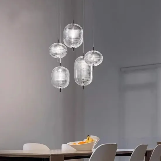 Nordic Modern Simple Creative Personality Glass Dining Room Lamp AC Powered Adjustable Height Bar Chandelier for Bedroom Living