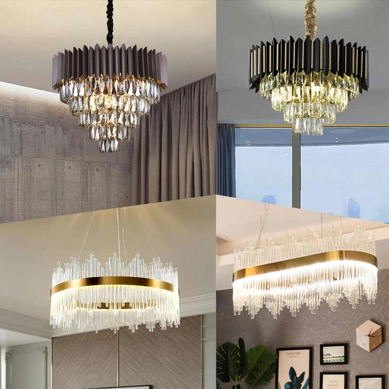 Hot Sale Indoor Decorative Modern Design Chrome Hanging Crystal Chandeliers Pendant Lighting for Kitchen Island