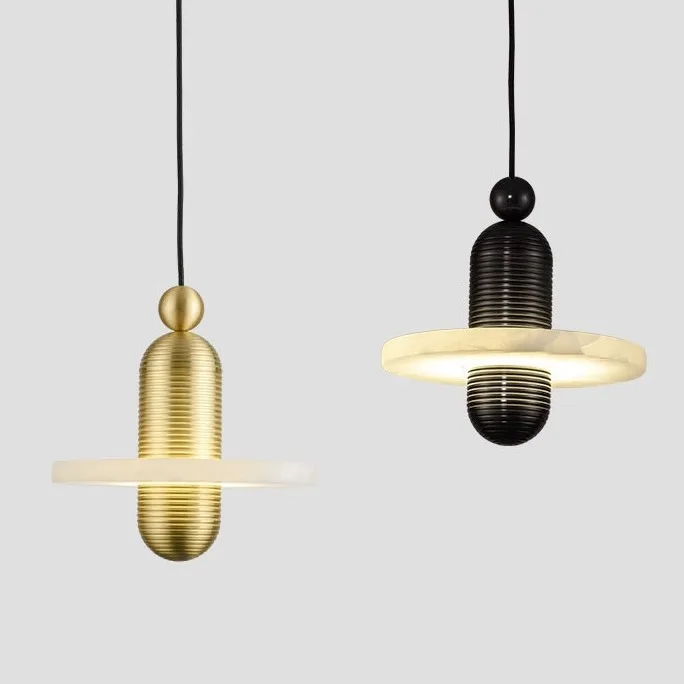 High Quality Modern Nordic Pendant Light Black Aluminum Hanging Marble for Dining Room Exhibitions Small Sizes for Villas