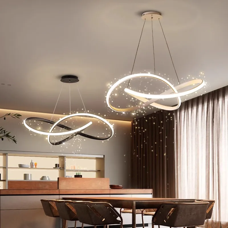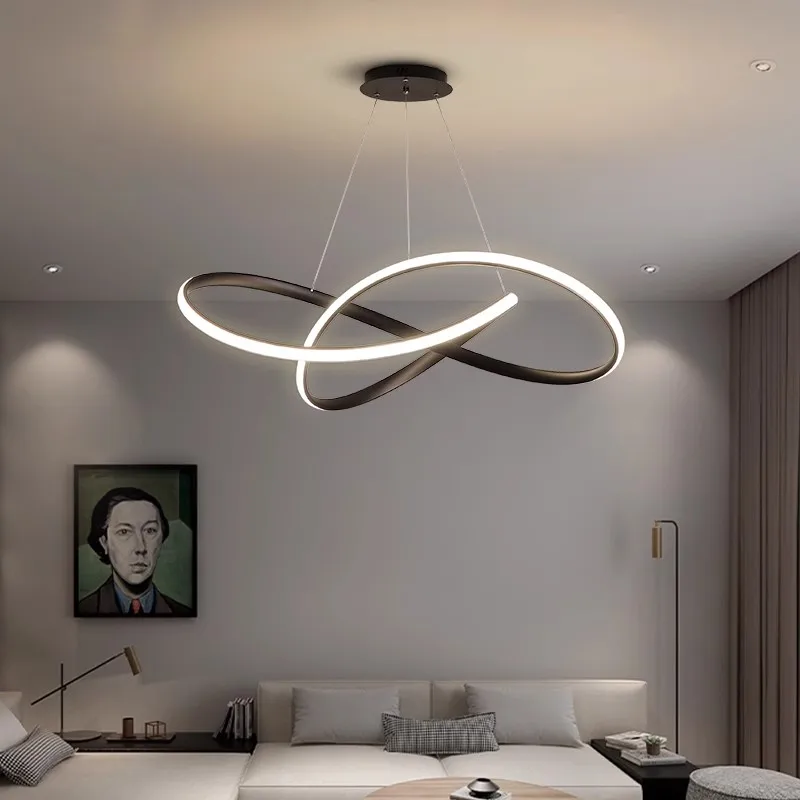 Hot Sale Simple Modern Creative Indoor Decoration Tricolor Light Irregular Ring Chandelier for Dining Room Living Room