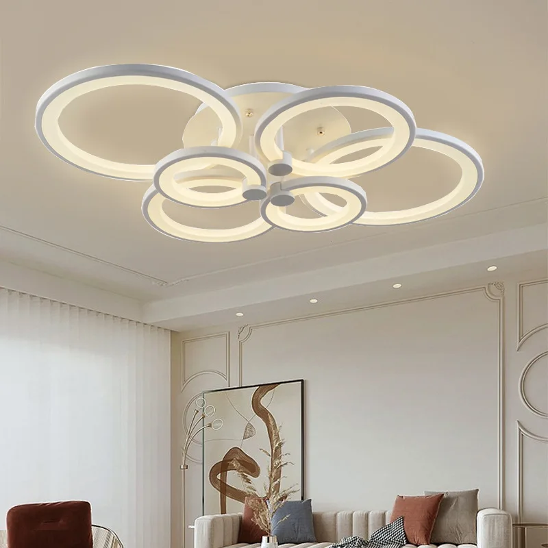 Acrylic Rings Modern Ceiling Lamp Living Room Circle Three Colors Dimmable Led Ceiling Lights
