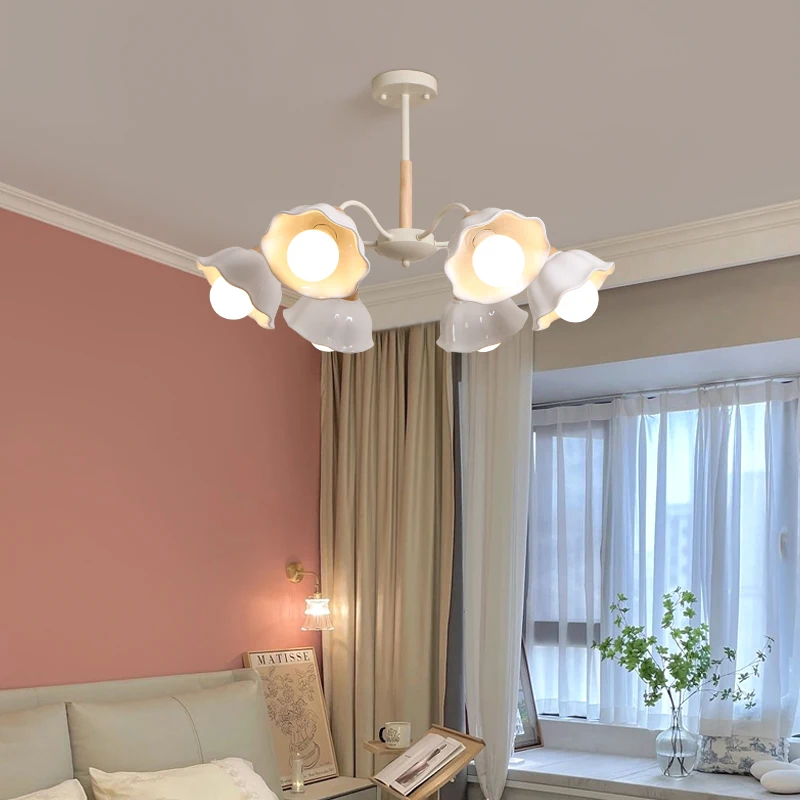 Retro Cream Style Multi Head Living Room Dining Room Glass Chandelier Classic Design Bedroom Pendant Light