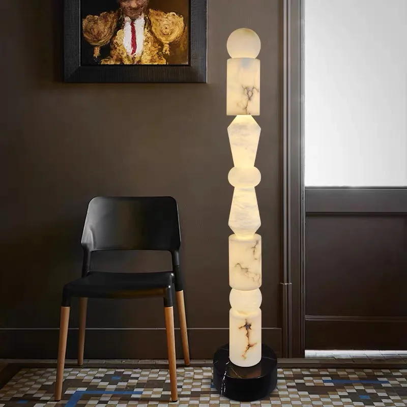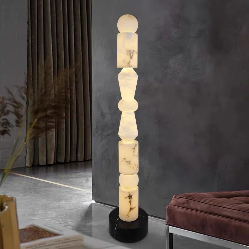 Modern Spanish Designer Simple Marble Floor Lamp Natural Copper Material for Villa Living Room Office Table Lamp Model for Sales