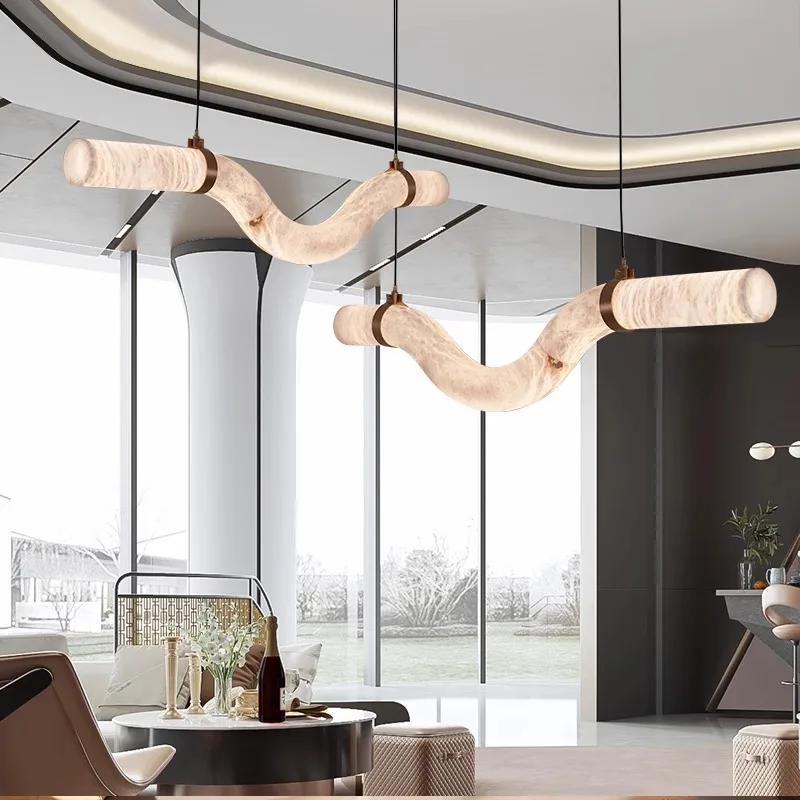 Designer Luxury Simple Small Chandelier Natural Marble Restaurant Bedroom Study bar Alabaster Pendant Light
