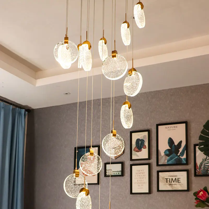 Modern Gold Bubble Hanging Pendant Light Foyer Staircase High Ceiling Crystal Chandelier for Long Villa