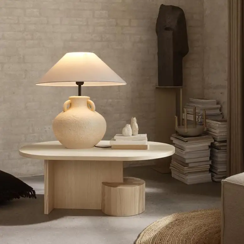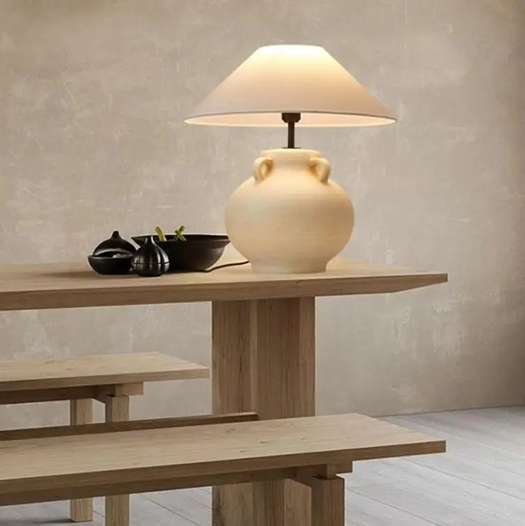 Wabi-sabi Modern Ceramic LED Dome Table Lamp with AC for Bedroom Headboard Decoration