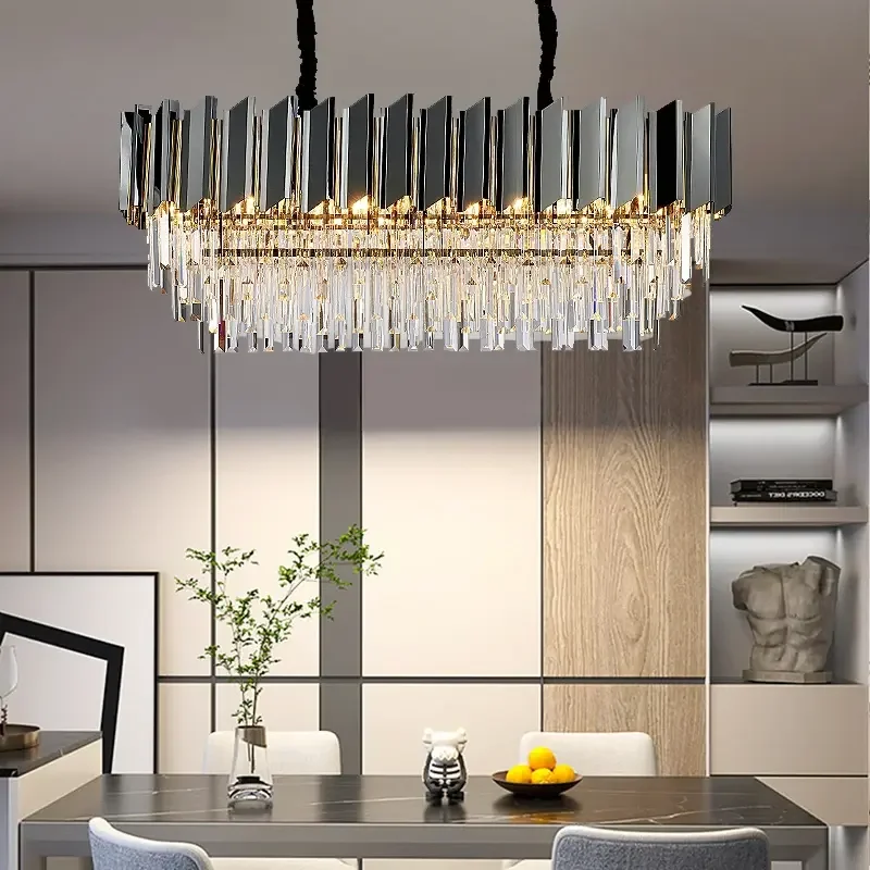 Rectangular Modern Pendant Lights Restaurant Luxury Black Chandeliers Lighting With Crystal