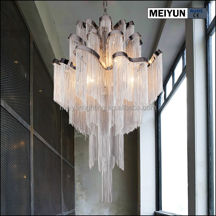 Modern Minimalist Living Room Aluminum Chandeliers Tassels Villa Penthouse Stairs Chandelier