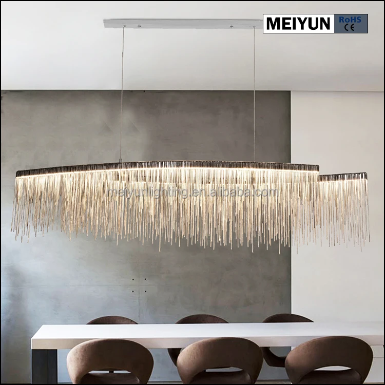 Zeal Lighting Dining Room Villa Decorative Fringe Pendant Light Modern Aluminum Tassel Chain Chandelier