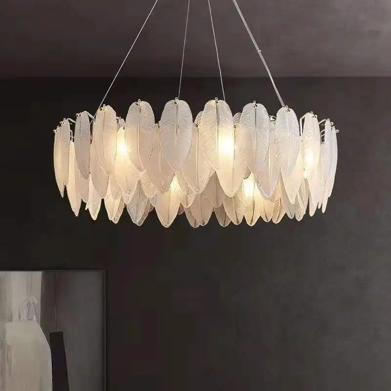 French Style Modern Minimalist Pendant Light Bedroom Modern Simple Glass Chandelier Feathers