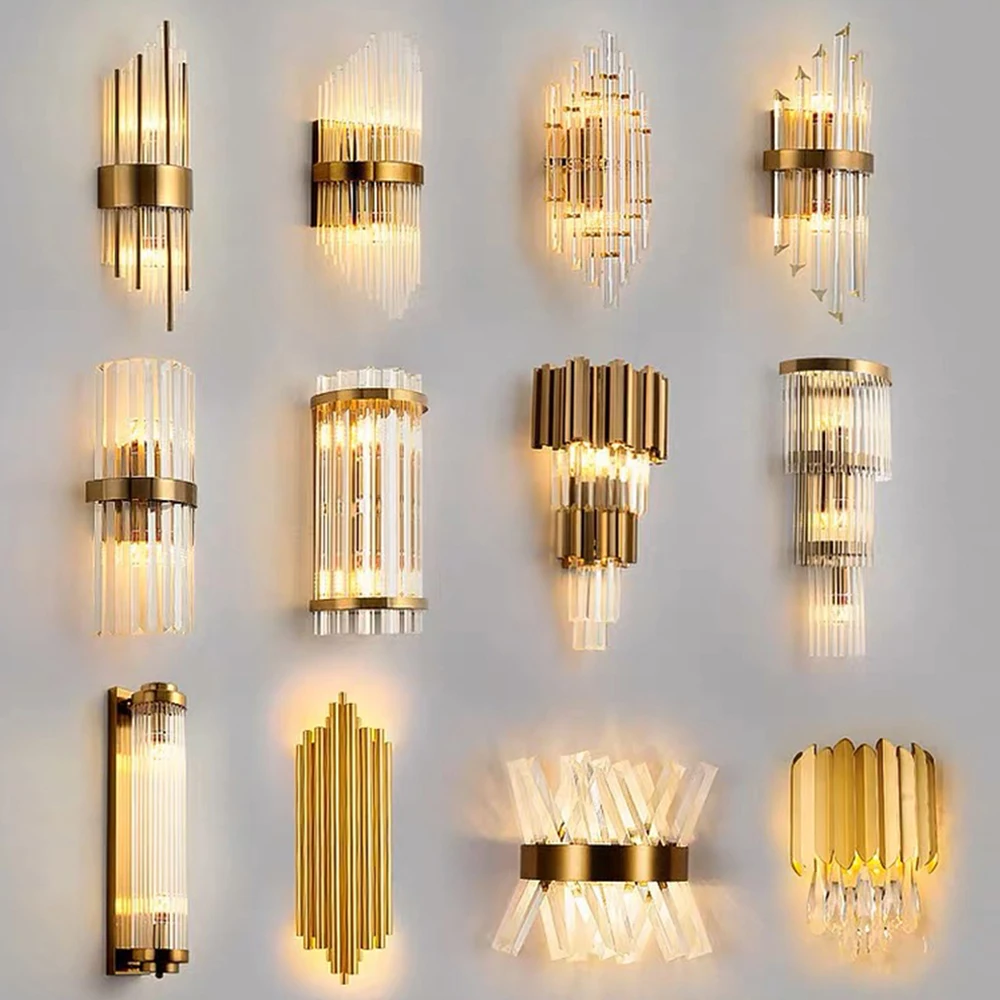 Modern Decoration Gold Living Room Bedroom Corridor Interior Sconce Bracket Crystal Led Wall Lamp Fancy Light for Home