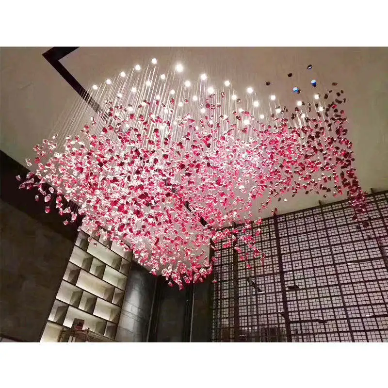 Wedding Hall Chandelier Hotel Hanging Pendant Light Customized Amber Crystal Chandelier Lighting for Lobby