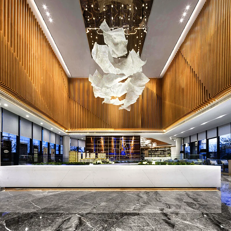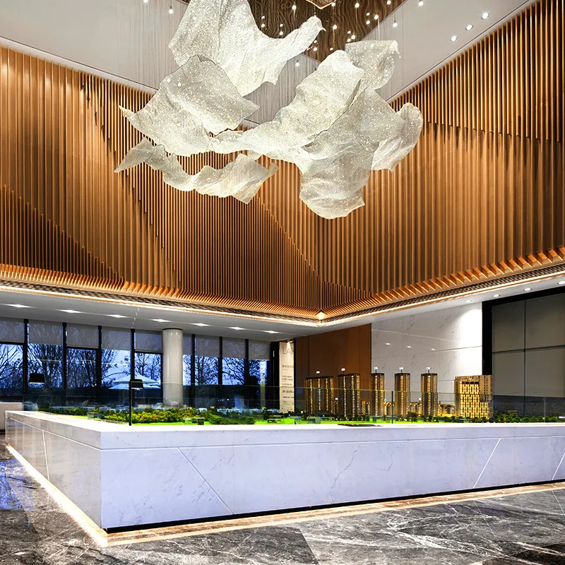 Wedding Decoration High Ceiling Pendant Light Hotel Lobby Customized Crystal Ribbon Chandelier Luxury