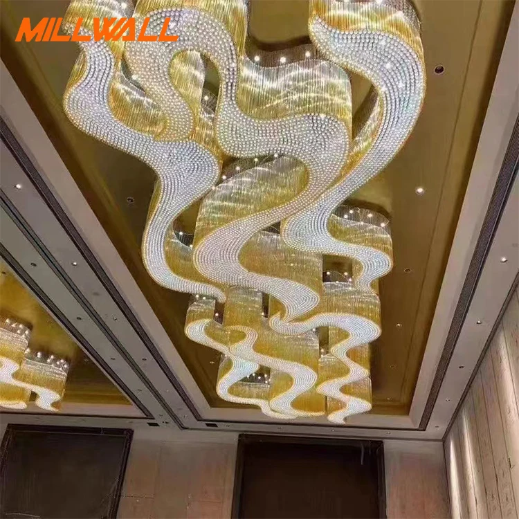 Zeal Lighting Hotel Lobby Hall Decorative Large Hanging Light Customized Long Gold Crystal Elegant Chandelier