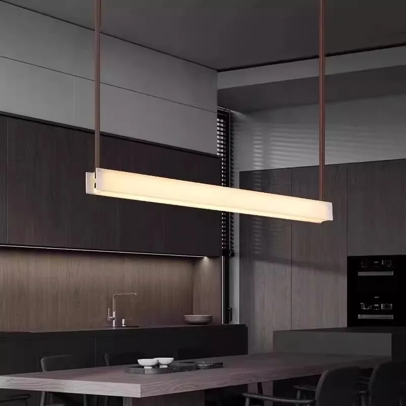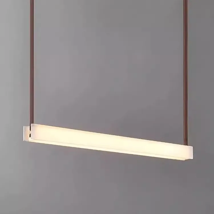 All-Copper Restaurant Bar Counter Chandelier Spanish Marble Design for Villa One-Line Tea Room Long Strip Lamps Creates