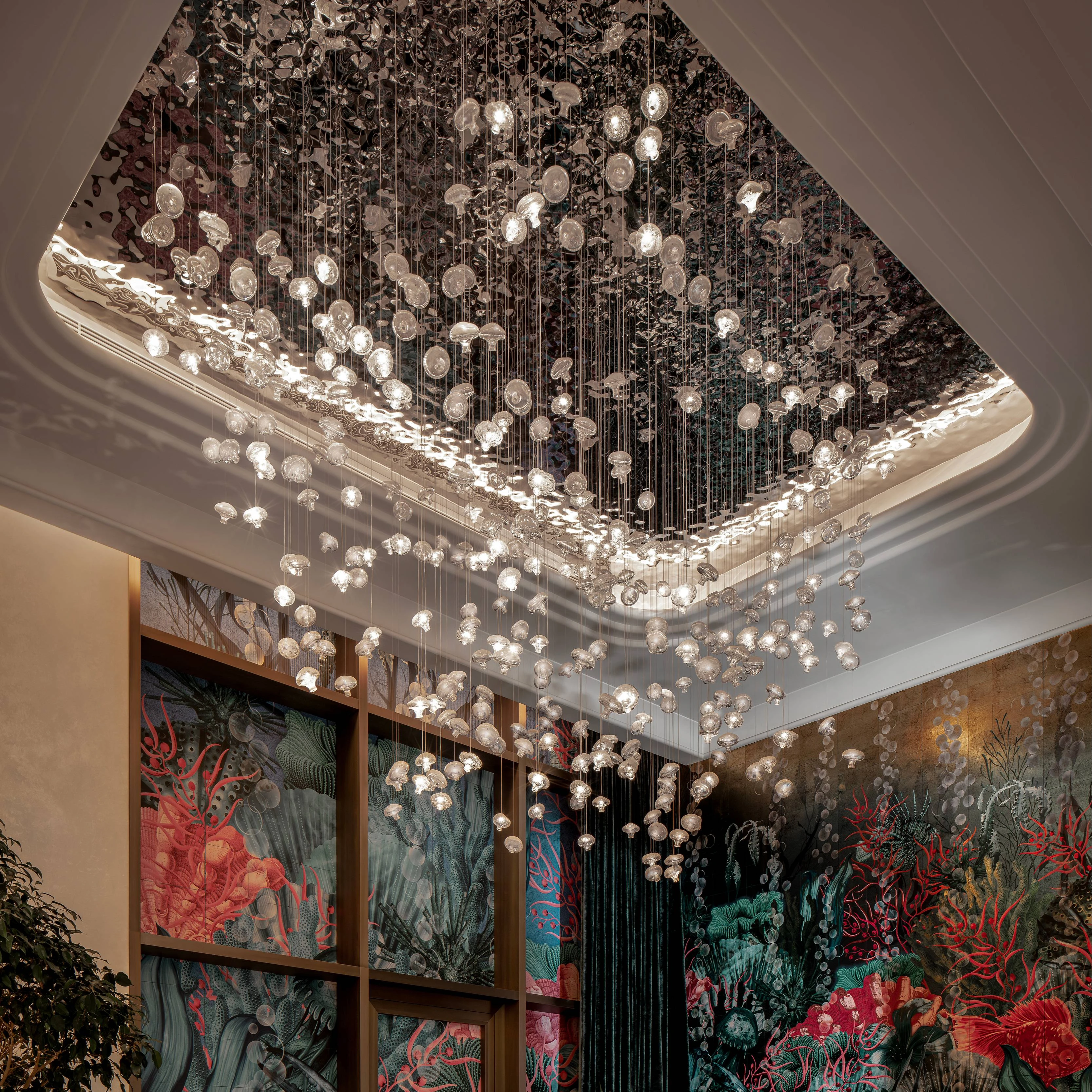 ECOJAS Transparent Handmade Glass Luxury Chandelier for Villa Hotel Lobby Club Customized Chandelier
