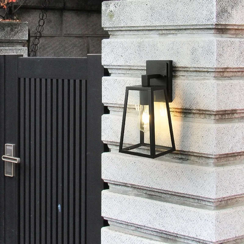 Outdoor clear Glass Lantern Sconce Light Decorative Modern Led Fixture Waterproof Black Garden Wall Lamps