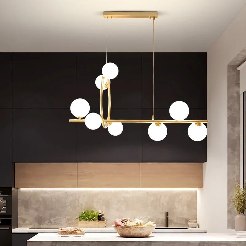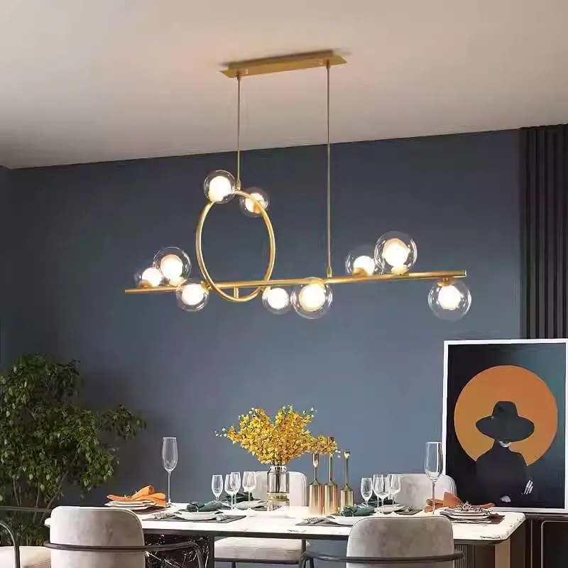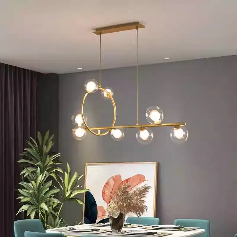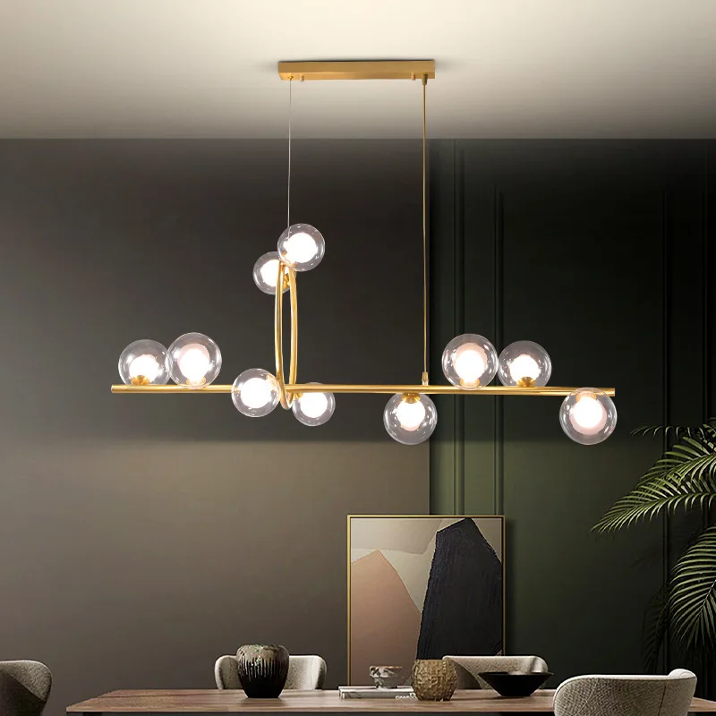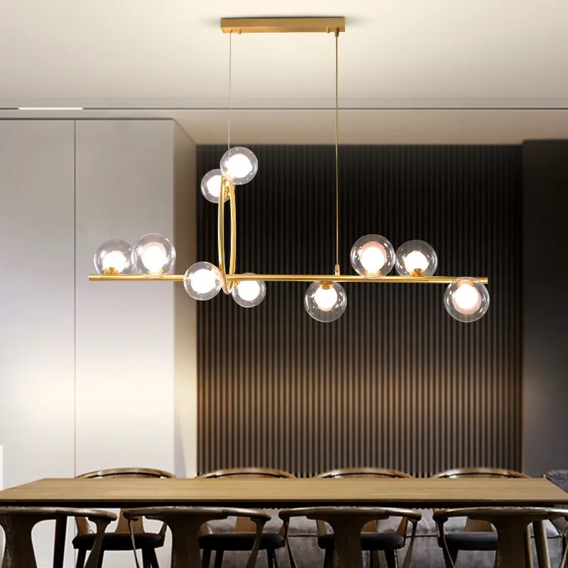 Luxury Glass Ball Chandelier Bubble Kitchen Island Pendant Light Rectangle Decor Hanging Lamp Cheap Nordic Modern Gold Lamps