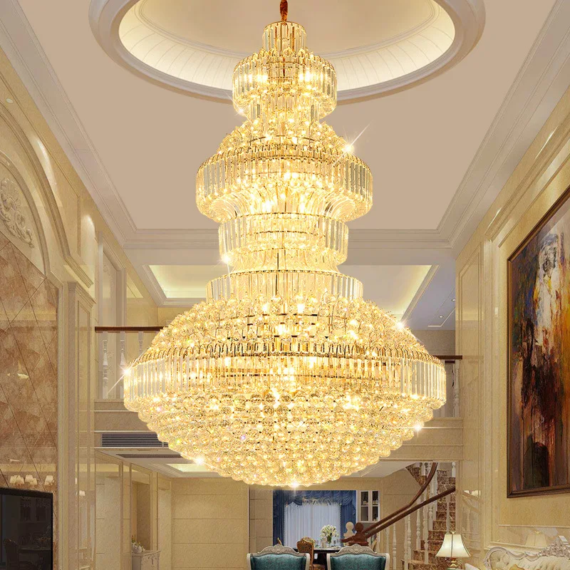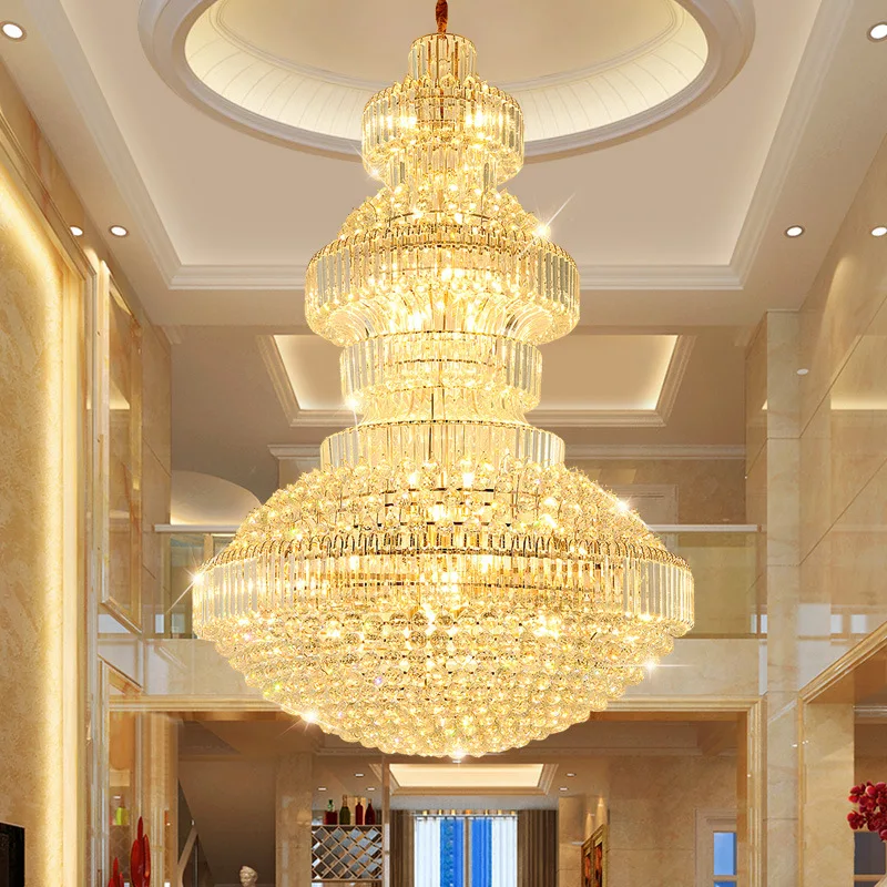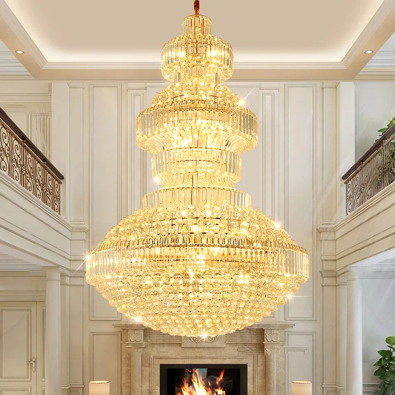 Light Luxury Crystal Chandelier for Hotel Lobby Villa Living Room Empty Staircase Lamp Elegant Duplex Pendant Lights