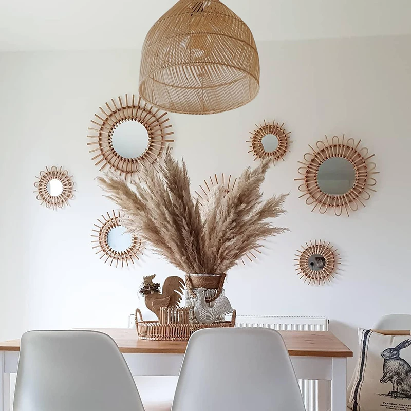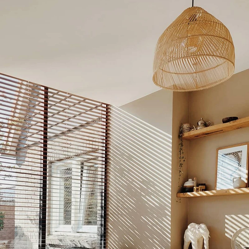 Wabi-Sabi Handcrafted Tassel Macrame Woven Pendant Light Twine Braid Rattan Led Rattan Chandelier