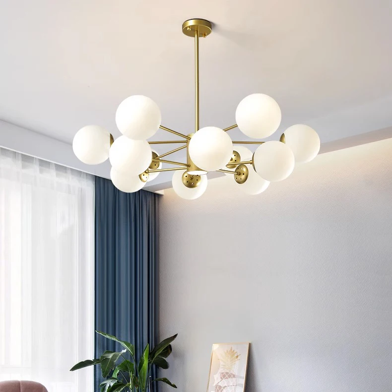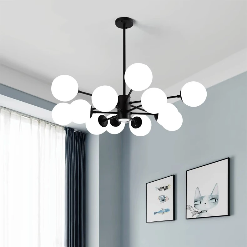 Modern Farmhouse Sputnik Chandelier Branch Height Adjustable Mid Century Glass Globes Classic Vintage Pendant Light Fixture