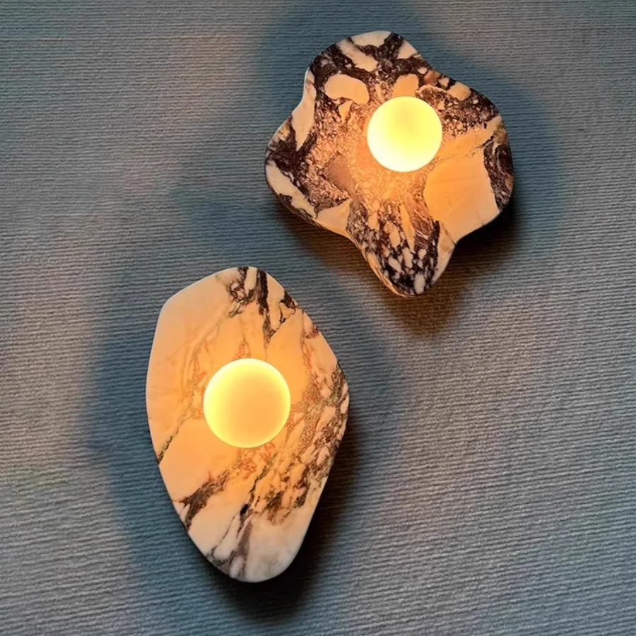 New Modern Designer Home Decor Natural Marble Wall Sconce Lamp Creative Luxury Cafe Restaurant Hotel Flush Mount Wall Light