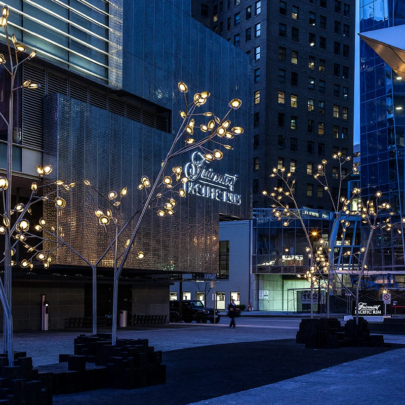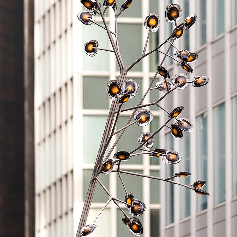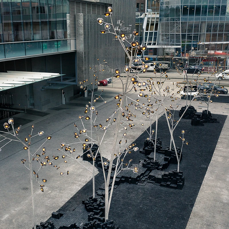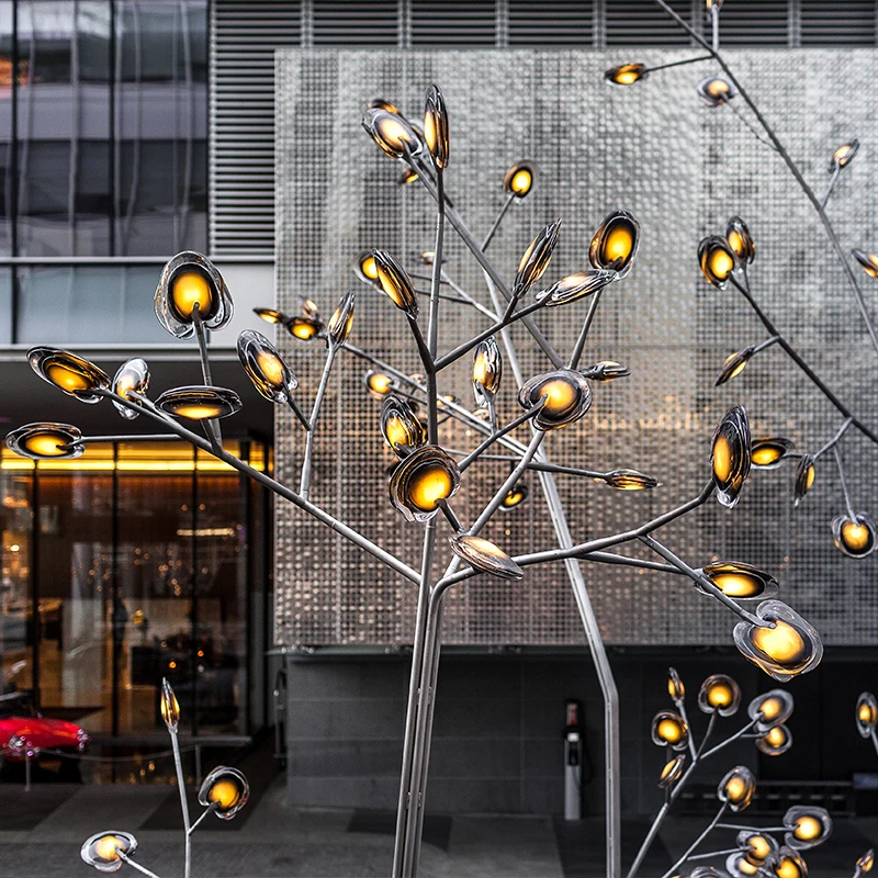 Modern Metal Simulation Luminous Landscape Ornament for Outdoor Large Stainless Steel Tree Sculpture Garden Light