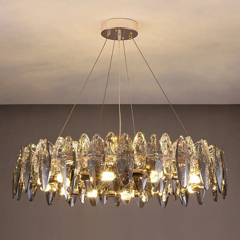 Trending High Ceiling Pendant Light Modern Luxury Smoke Grey K9 Crystal Circle Chandelier