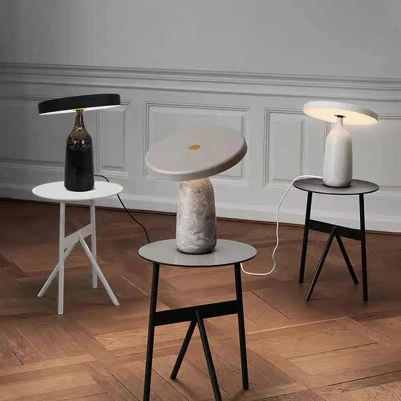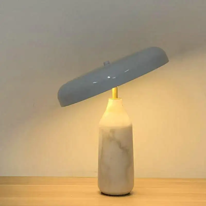 Modern Nordic Marble Battery Powered LED Lamp for Reading Flexible Luxury Art Bedside Light Marble Shade for Living Room Bedroom