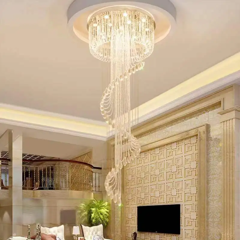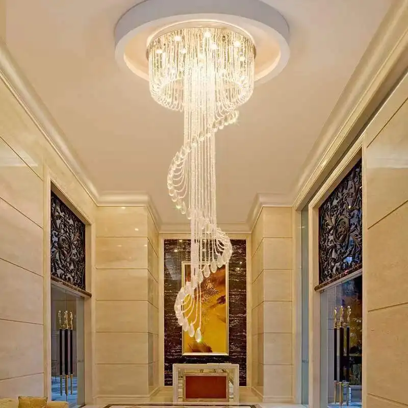 Zeal Lighting Long Stairwell Hanging Pendant Light Staircase Villa Duplex Stair High Ceiling Crystal Chandelier