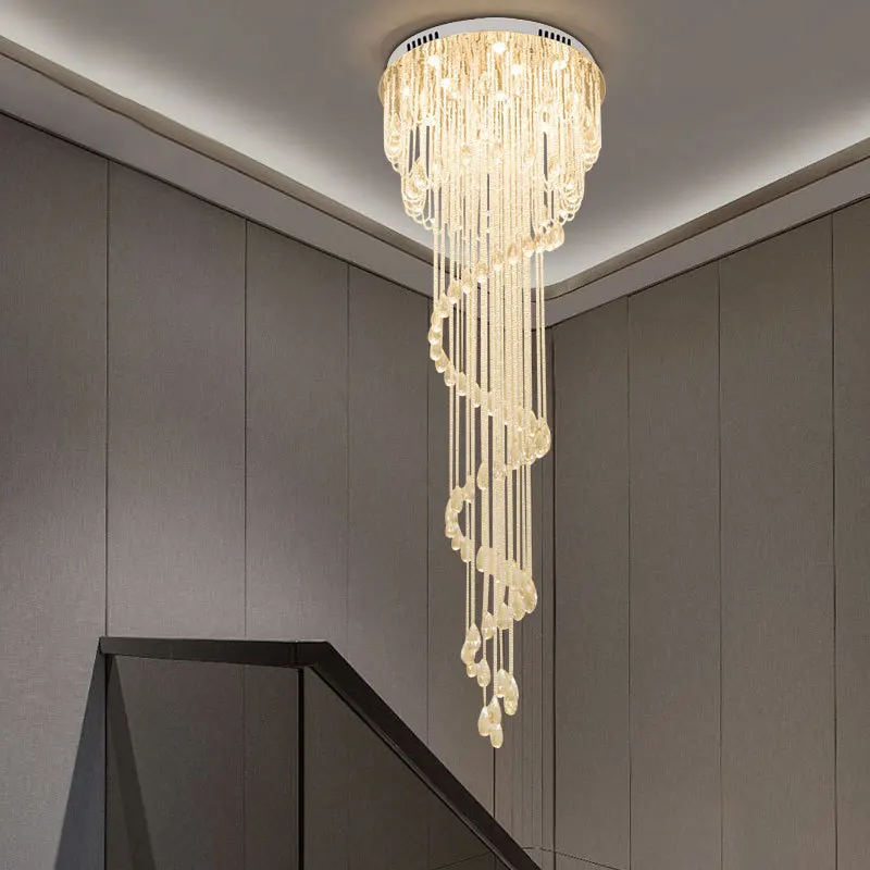 Restaurant Modern Nordic Minimalist Revolving Staircase Crystal Chain Long Chandelier Pendant Light
