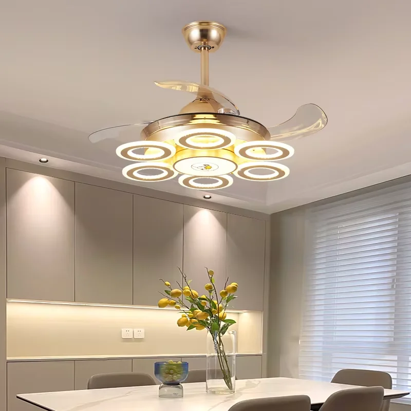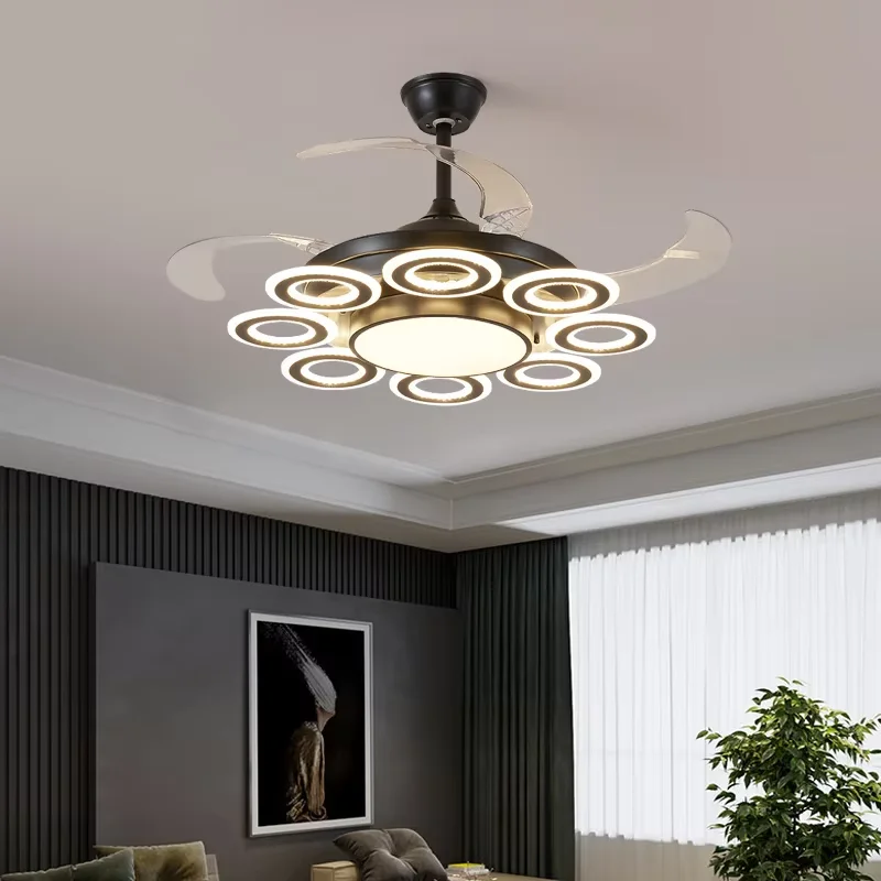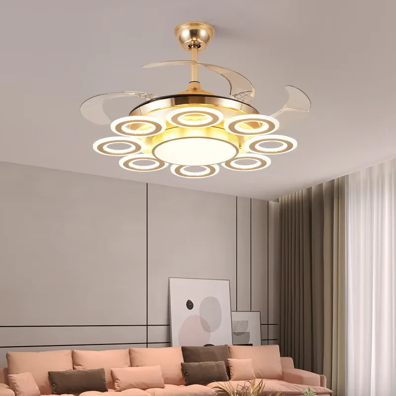 Modern Luxury LED Ceiling Fan with Light Iron Body & Remote Control for Indoor Living Room Decor