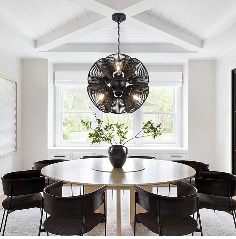 Wabi-Sabi Handcrafted Tassel Macrame Woven Pendant Light Twine Braid Rattan Led Rattan Chandelier