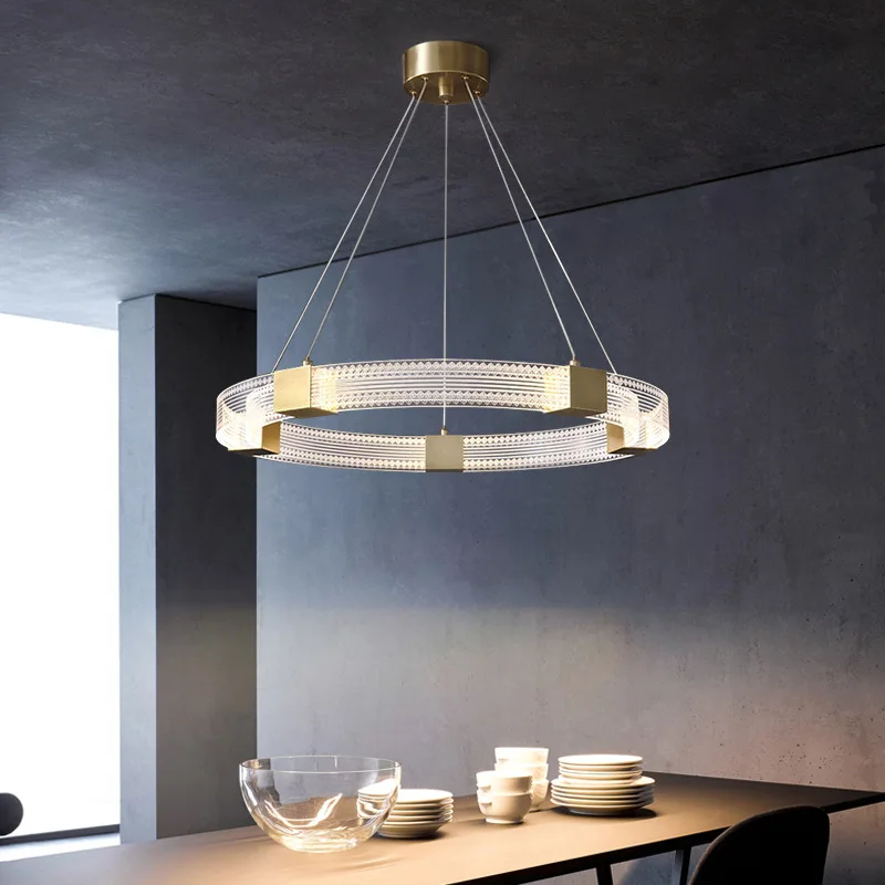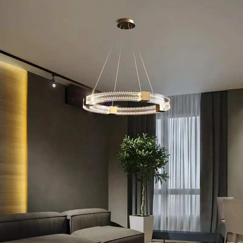 Nordic Personality Ring Chandelier Acrylic Gold Pendant Lights for Home Hotel Restaurant