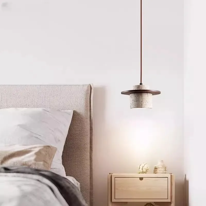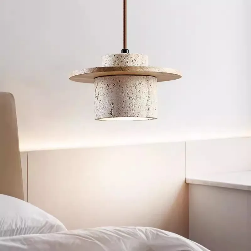 Modern Walnut Color Flying Saucer Chandelier with Yellow Hole Stone Remote Control Mode
