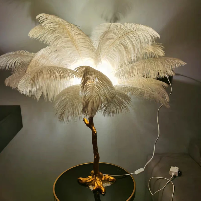 Modern Nordic Luxury Bedroom Living Room Resin Floor Light Led Standing Ostrich Feather Floor Lamp