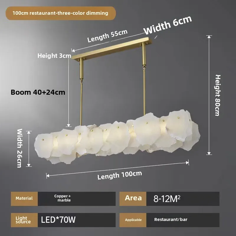 Modern Designer All-Copper Marble Luxury Minimalist Chandelier for Dining Living Room Tea Duplex Staircase Home Long Line Middle