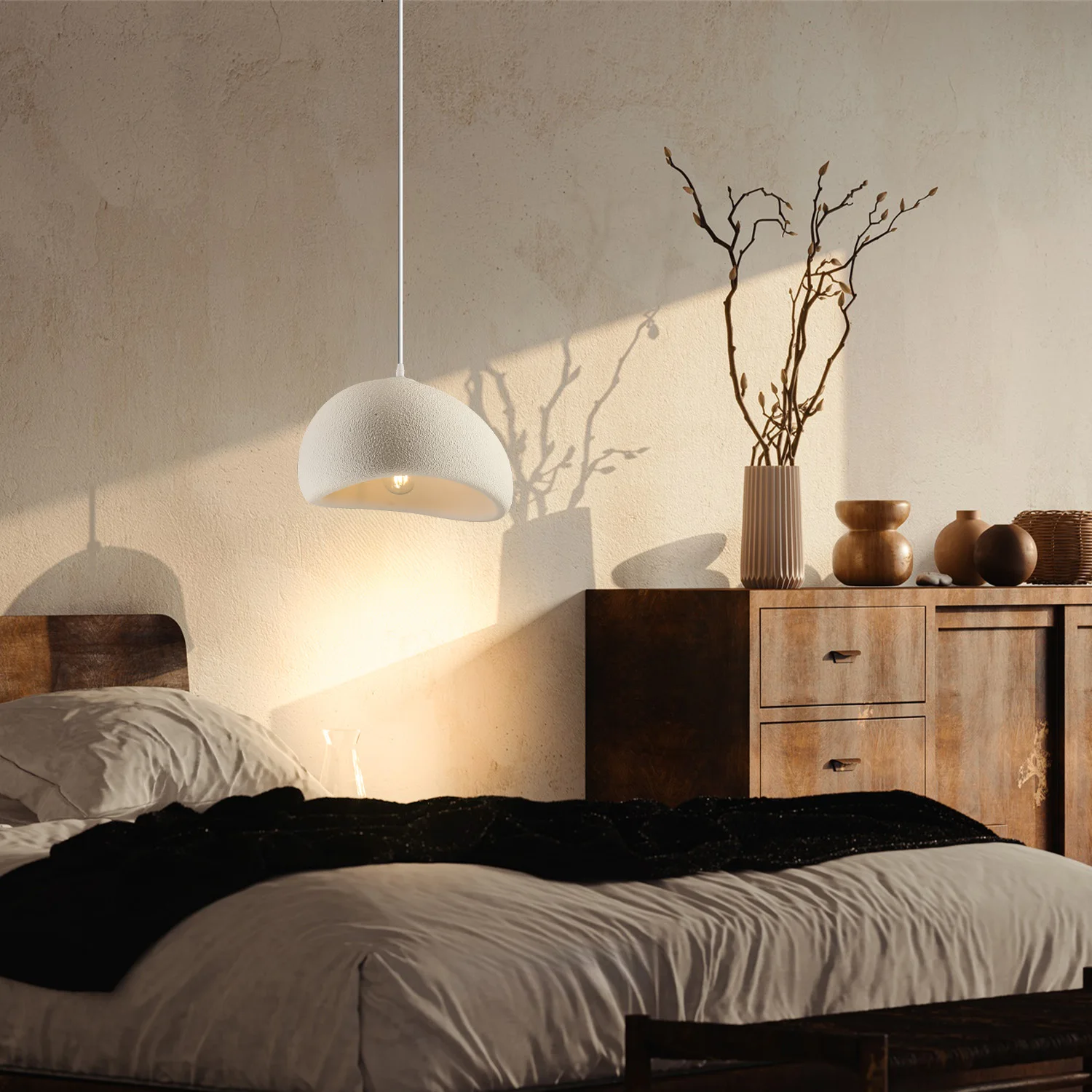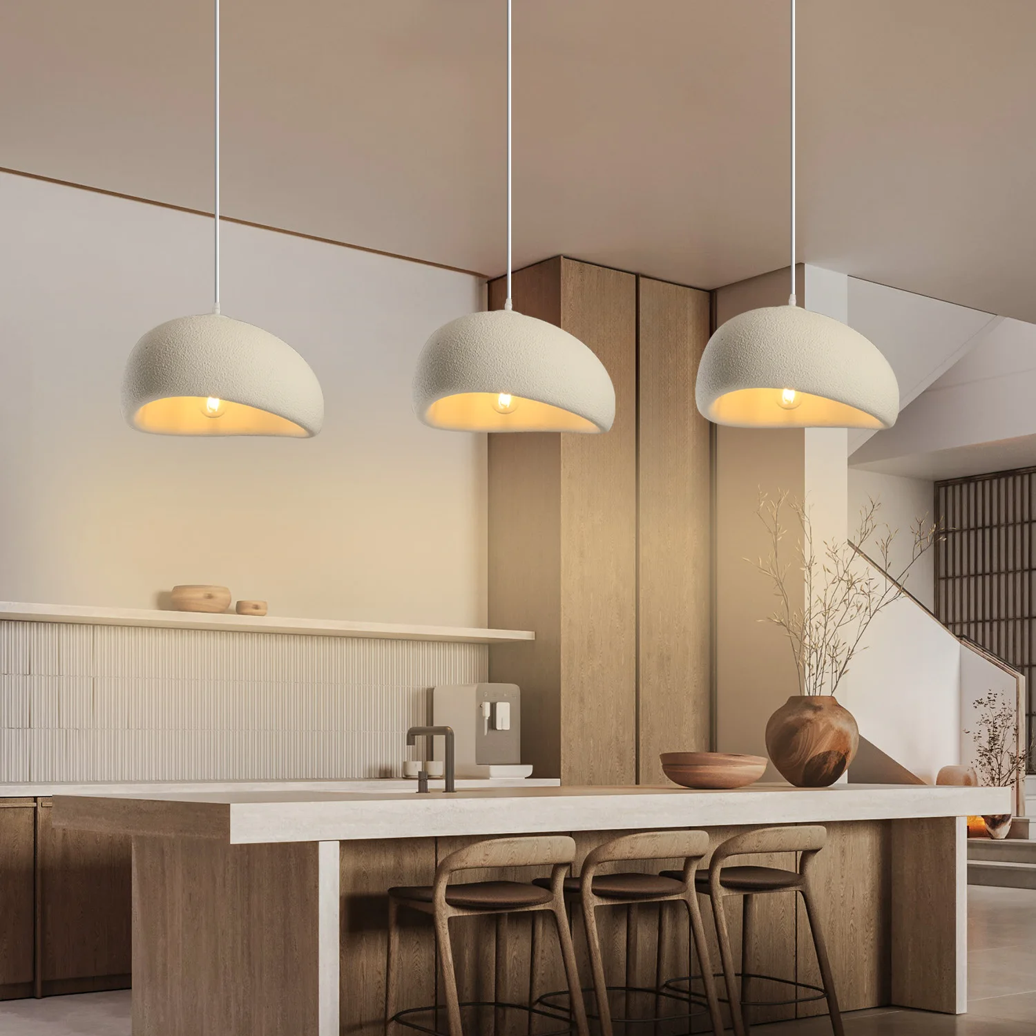 Wabi-sabi Japanese-style Modern Adjustable Height 3000K LED Hanging Pendant Light for Home Restaurant & Hotel Use