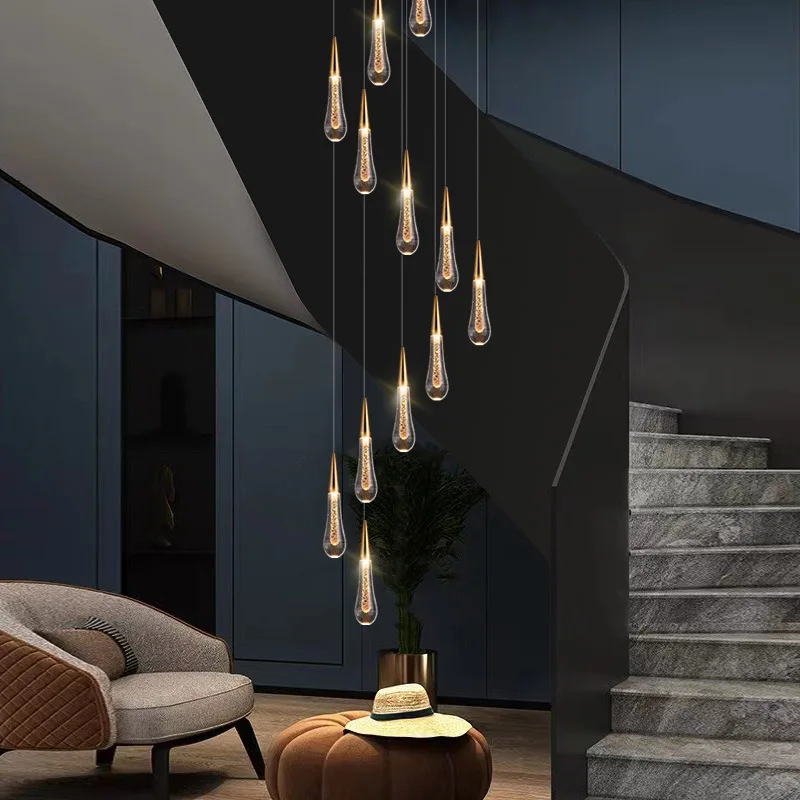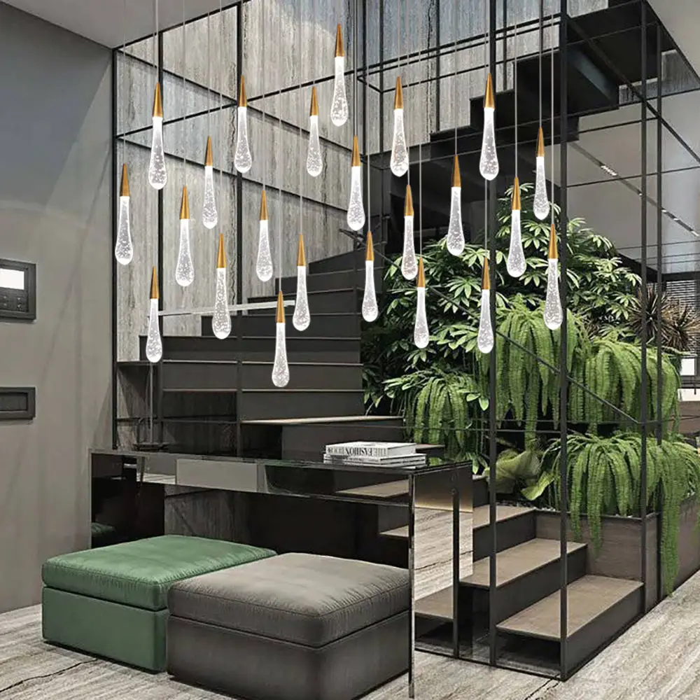 Zeal Lighting Luxury Dining Room Gold Raindrop Glass Teardrop Chandeliers Staircase Hanging Light