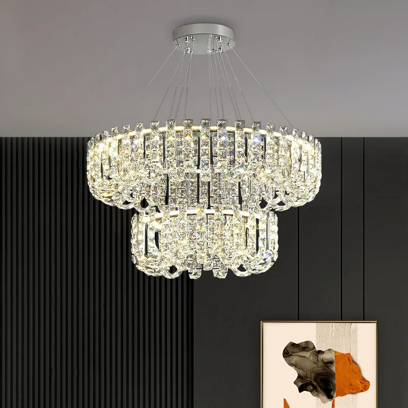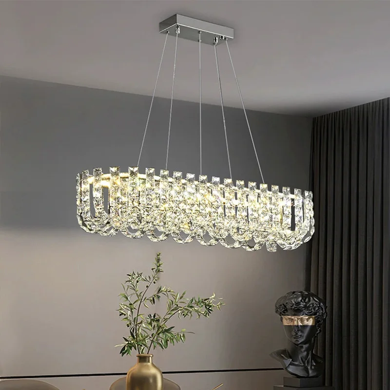 Home Decor Luxury Led Pendant Light Modern Rectangle Chrome Kitchen Hanging Lamp Minimalist Indoor Oval K9 Crystal Chandelier