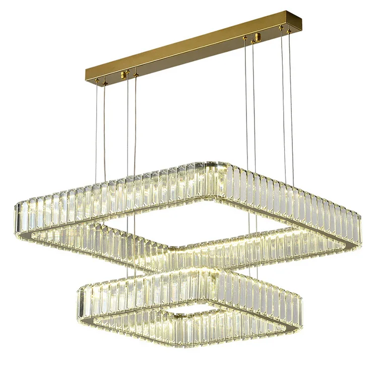 Nordic Indoor Led Luxury Style Gold Lustre Rectangular Square Hanging Pendant Lamp Modern Crystal Chandelier Light for Home